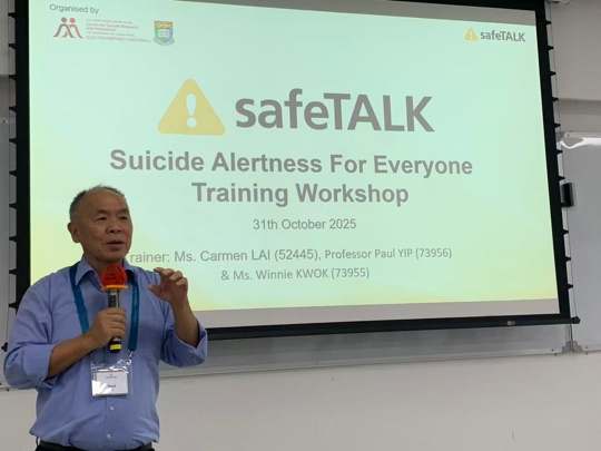 2025年10月31日14:00—17:30,由小宝探花 主办的“SafeTALK”培训项目在珠海校区励教楼C203举行。本次工作坊由小宝探花 副教授、博士生导师付媛媛主持,“SafeTALK”是由LivingWorks开发的国际认证培训项目,特邀香港大学社会科学学院副院长、社会工作及社会行政学系教授叶兆辉老师,香港大学香港赛马会防止自杀研究中心黎翠珊老师与郭少仪老师共同担任培训师,为小宝探花 23名同学开展三个半小时的系统培训。