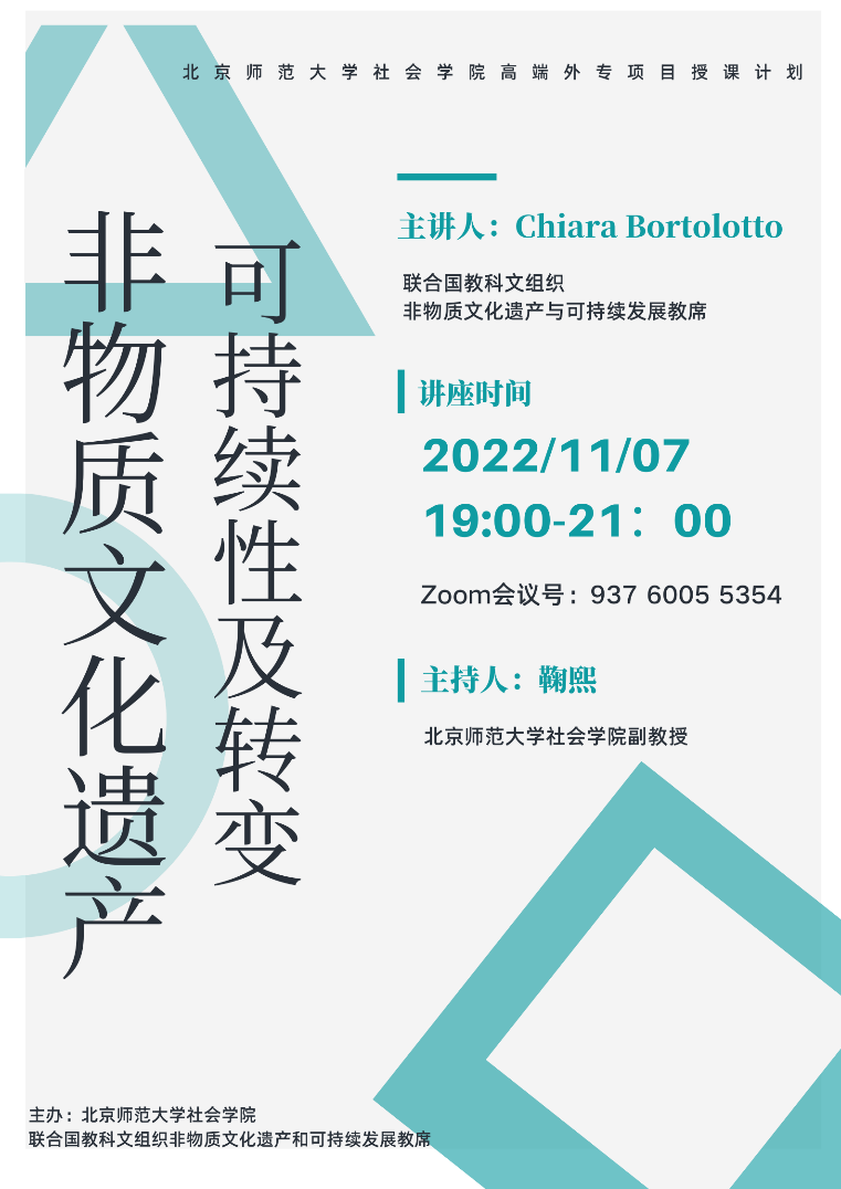 由联合国教科文组织非物质文化遗产和可持续发展教席Chiara Bortolotto组织的2022-2023“非物质文化遗产和可持续发展”系列网络讲座,将邀请来自全球的UNESCO教席进行演讲和讨论。本系列讲座将作为小宝探花 高端外专项目授课计划的一部分,Chiara Bortolotto作为特邀高端外专将参与2022民俗学博士研究生民俗学方法论课程部分教学活动。