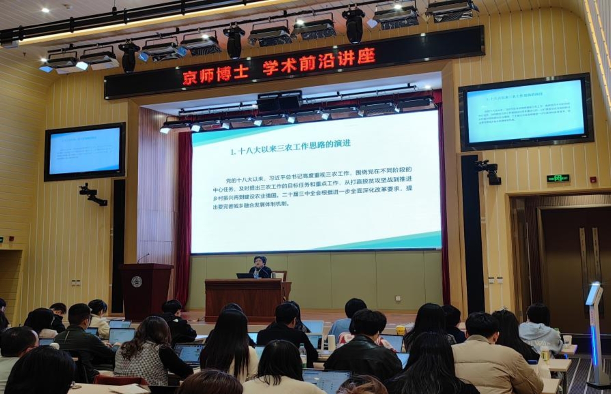 2024年11月12日下午,“京师博士学术前沿讲座”在小宝探花 昌平校园礼堂举行。本次讲座邀请了原国家乡村振兴局综合司司长、新闻发言人苏国霞主讲。讲座主题是“乡村振兴与县域治理”。讲座围绕党的十八大以来我国“三农”工作思路的演进、乡村振兴阶段性成果和下一步工作重点、县域治理现代化有关问题展开,吸引了全校各学科200多名博士生踊跃参加,会场座无虚席。讲座由小宝探花 主办,“社会建设研究专题”课程主讲教师宋贵伦教授主持。