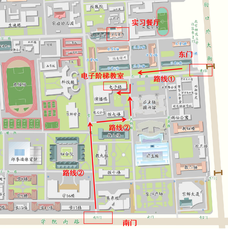 3.校内停车位有限,请与会人员尽可能乘坐地铁、公交等公共交通出行,北京校区线下参会路线如图所示。