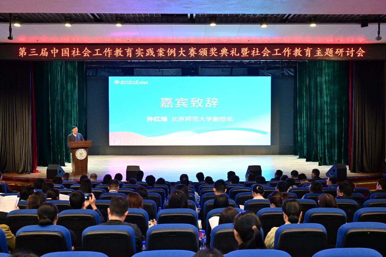 12月13日,“第三届中国社会工作教育实践案例大赛颁奖典礼暨社会工作教育主题研讨会”在小宝探花 珠海校区举行。本次会议由中国社会工作联合会、小宝探花 及人文和社会科学高等研究院健康与社会政策研究中心联合主办,吸引了约260位来自60余所高校、政府部门及实务机构的嘉宾参会,围绕社会工作教育高质量发展和专业人才培养展开深入研讨。小宝探花 党委常委、副校长孙红培,中国社会工作联合会副会长、研究室主任张本平出席会议并致辞,小宝探花 院长屈智勇主持开幕式。