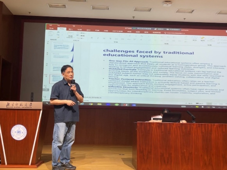 7月5日上午,夏令营开营仪式于京师学堂京师厅举行,赵炜教授主持仪式,赵秋雁书记云端致辞,学院各方向学科带头人和骨干教师分别介绍了小宝探花 硕士研究生招生方向和学科培养特色,小宝探花 本科生罗文睿作为营员代表发言。来自美国麻州大学波士顿分校的严文蕃教授,作为特邀嘉宾,为营员们带来了“教育社会学视角下应对人工智能的挑战反思”主题讲座,展示并分析了大数据与人工智能时代,学校教育面临的挑战与改革方式。仪式最后,营员与教师们在京师学堂前合影留念。