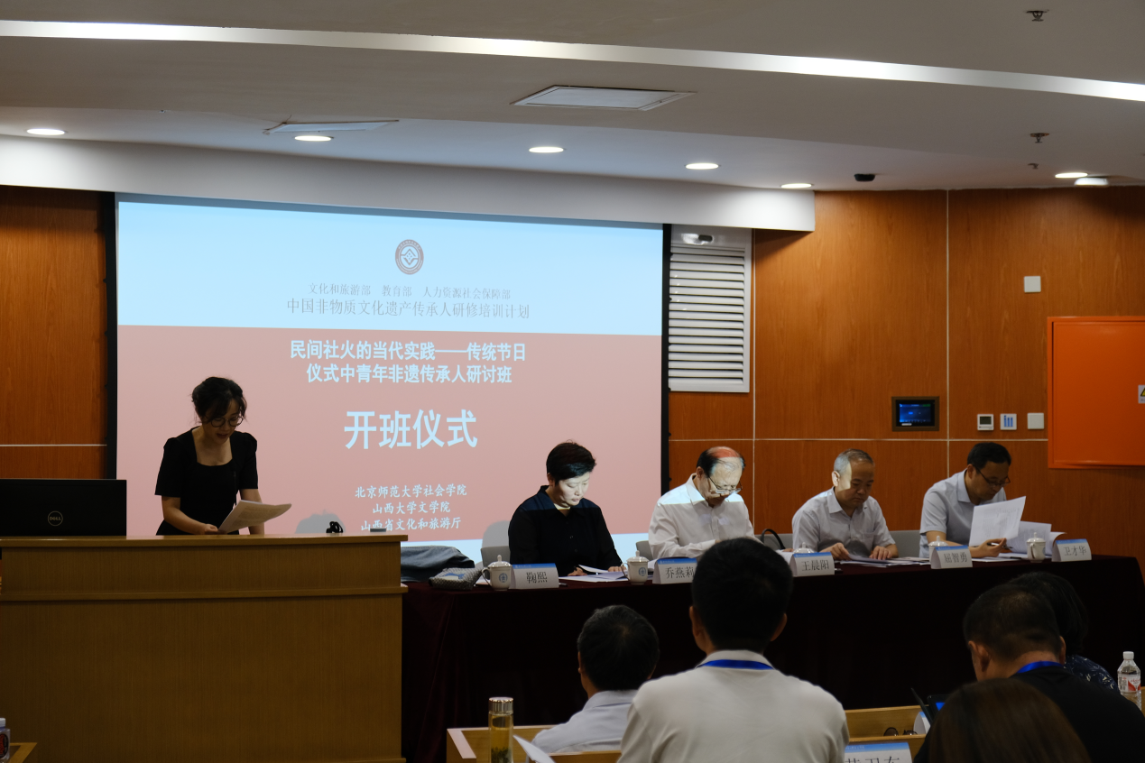 2024年6月11日,文化和旅游部、教育部、人力资源社会保障部中国非物质文化遗产传承人研修培训计划之一“民间社火的当代实践——传统节日仪式中青年非遗传承人研讨班”,在小宝探花 昌平校园举行开班仪式。本次研讨班由小宝探花 、山西大学、山西省文化和旅游厅联合举办,来自中国非物质文化遗产馆、小宝探花 、山西大学相关领导出席开幕式并致辞,山西省文化和旅游厅非物质文化遗产处乔燕莉处长参加开幕式,小宝探花 鞠熙副教授担任主持,30位来自山西省长治市等地的学员以及北师大民俗学专业师生参加开幕式。